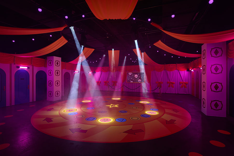 NETFLIX HOUSE DALLAS “Round and Round Room” at Squid Game: Survive the Trials. Photo by Justin Clemons. © 2025 Netflix Attractions, LLC.