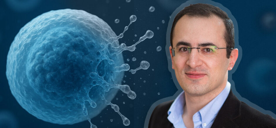 Ayaz Najafov, Ph.D., led a UT Southwestern study that identified the protein responsible for rupturing cell membranes during necroptotic cell death. [Composite: DI Studio, source images, UTSW]