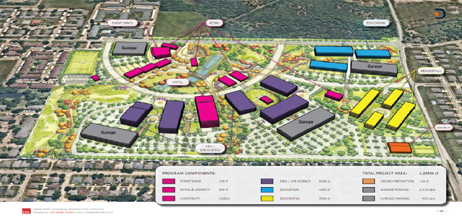 “When you look at the other health initiatives happening in Dallas—Pegasus Park, Texas Instruments Biomedical Engineering and Sciences, UT Southwestern at Redbird Mall, and Cypress Waters, to name a few—building a live/work hub dedicated to life science in Southern Dallas is a no-brainer,” he says.