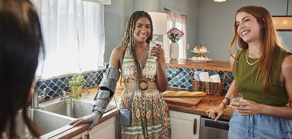 Dayspring is non-pneumatic, which means it doesn’t require air pressure for support, and, by wearing a small, lightweight Lithium-ion battery, people can move while using it. They can take a walk around the block, go shopping, go to a game—in other words, live their lives.