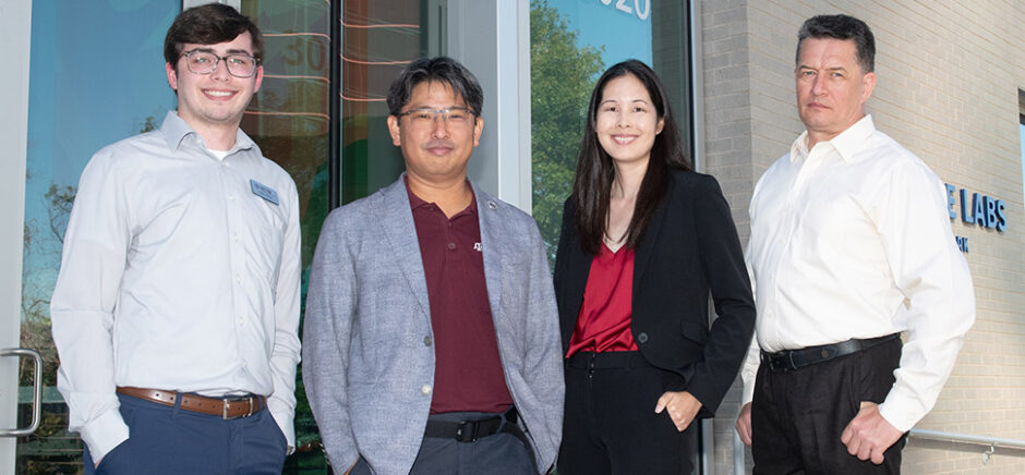 National Center for Therapeutics Manufacturing team members Logan Ardrey, Dr. Arum Han, Dr. Baley Reeves, and Dr. Andrew Syvyk [Photo: NCTM]