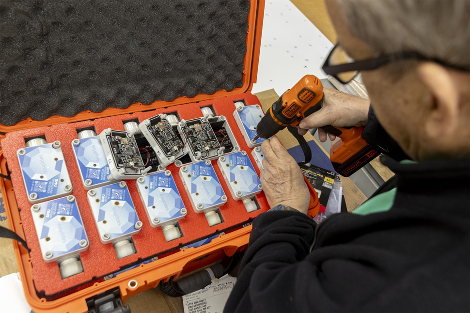 SMU research professor Chris Hayward scaled the Sapphire microbarometer into hundreds of portable, battery-powered sensors designed for large-scale infrasound research. [Photo: SMU]